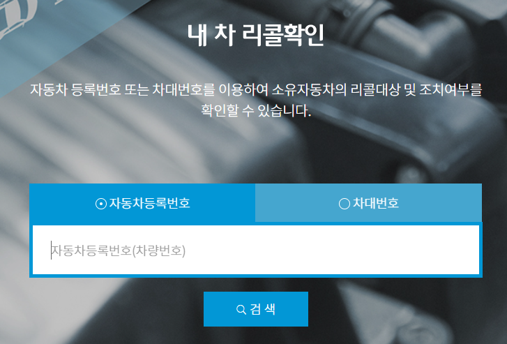 내 차번호 혹은 차대번호만 치면 리콜 대상인지 아닌지 바로 나와요!