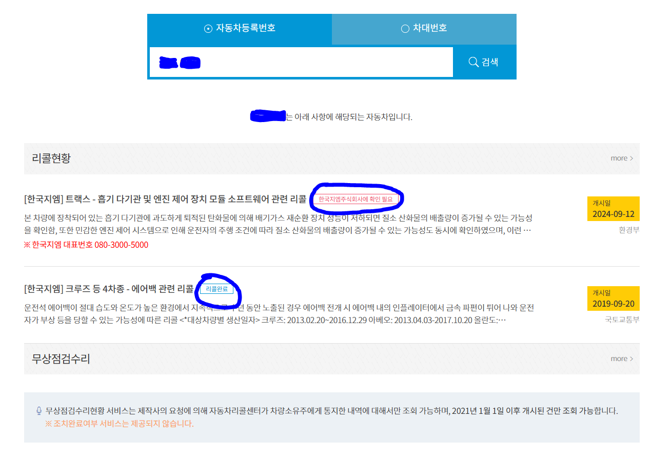 리콜 여부, 시행일자, 수리 이력까지 확인 가능