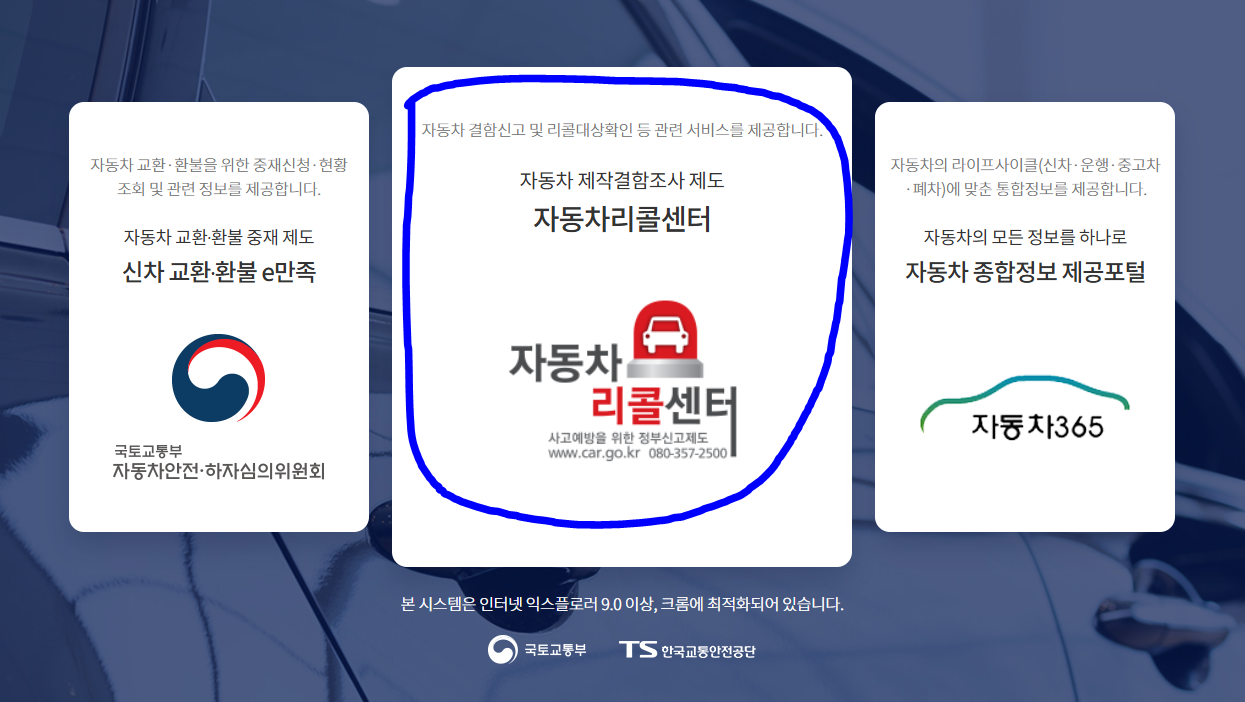 자동차리콜센터는 국토교통부에서 운영하는 공식 리콜 정보 사이트입니다.