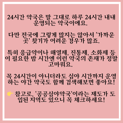 오늘 내용이 도움이 되셨다면, 📌 우리 동네 24시간 약국, 지금 미리 검색해 보는 거 어떨까요?