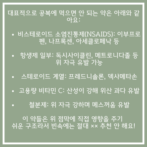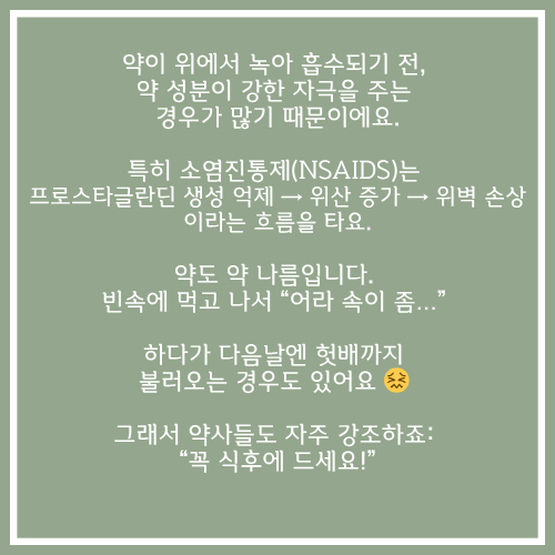 이 약들은 위 점막에 직접 영향을 주기 쉬운 구조라서 빈속에는 절대 ×× 추천 안 해요!