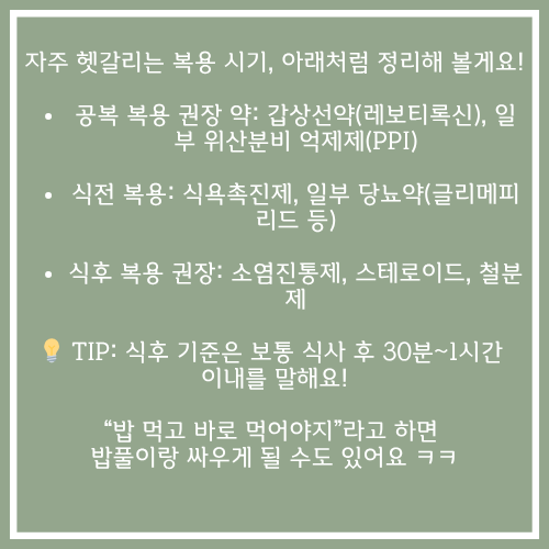 자주 헷갈리는 복용 시기, 아래처럼 정리해 볼게요!