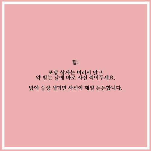 팁: 포장 상자는 버리지 말고 약 받는 날에 바로 사진 찍어두세요. 밤에 증상 생기면 사진이 제일 든든합니다.