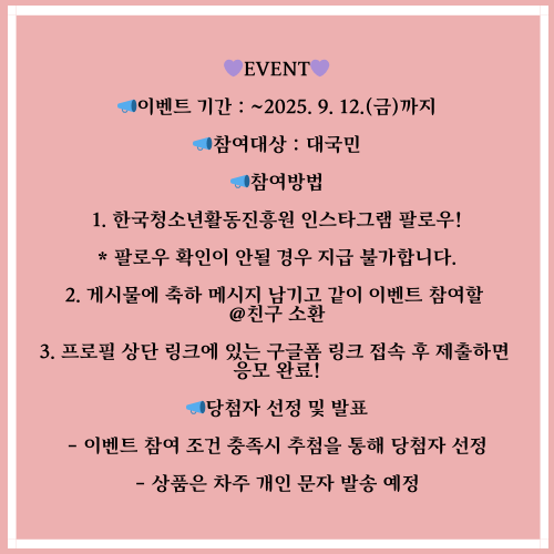 [~2025-09-12] 한국청소년활동진흥원 1만 팔로워 감사 이벤트