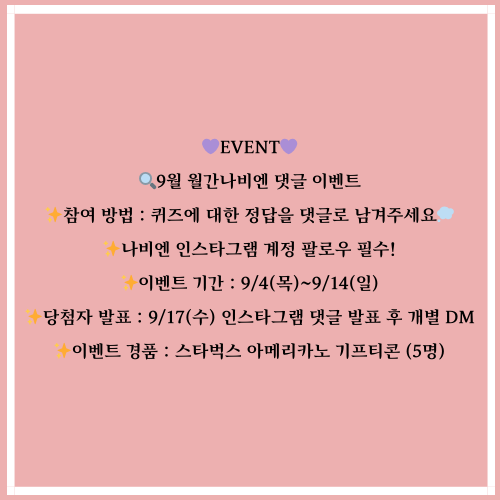 ☕📺 [9/4(목)~9/14(일)] 월간나비엔 댓글 이벤트