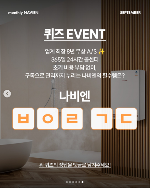 퀴즈 내용은 공식 이벤트 게시물에서 확인하실 수 있어요. 문제를 꼼꼼히 읽고 정답만 적으면 OK. (보일러 문제는 난방, 퀴즈 문제는 냉방—머리는 시원하게, 손은 따뜻하게 타이핑! 😄)