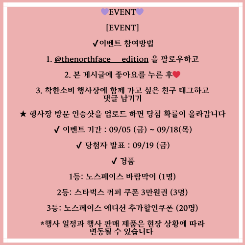 - 3등 : 노스페이스 에디션 추가할인쿠폰 (20명)