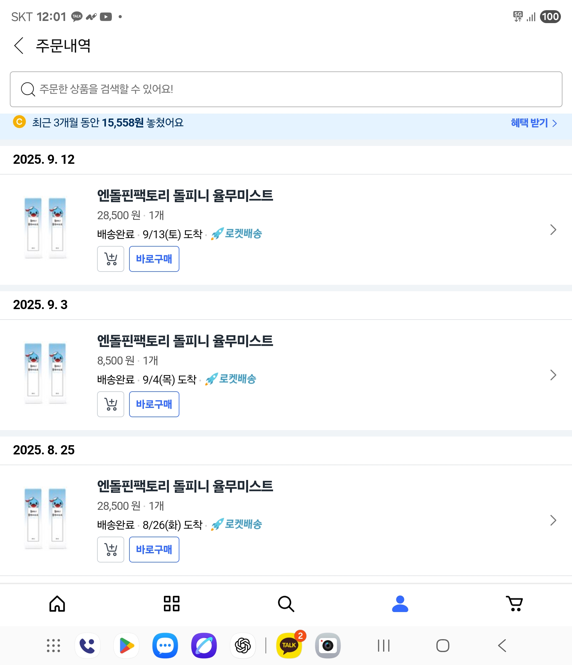 - 소비 주기: 약 15일 사용하면 2개를 다 쓰는 편 → 한 달에 2번 정도 재구매하는 패턴