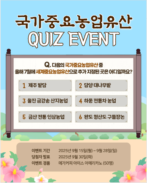 🌾 [2025-09-15~09-28] 국가중요농업유산 퀴즈 이벤트