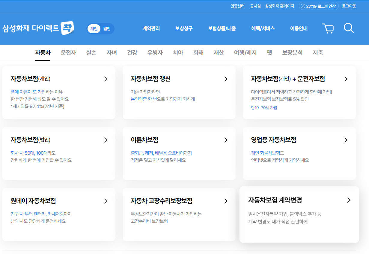 삼성화재 다이렉트 자동차 보험 이전 신청하기